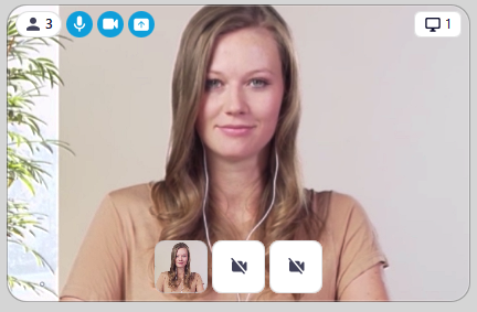 In der Sprecheransicht füllt das Video der sprechenden Person das Minifenster aus. Die Videos der anderen Teilnehmenden werden am unteren Rand der Bühne in einer Reihe angezeigt.