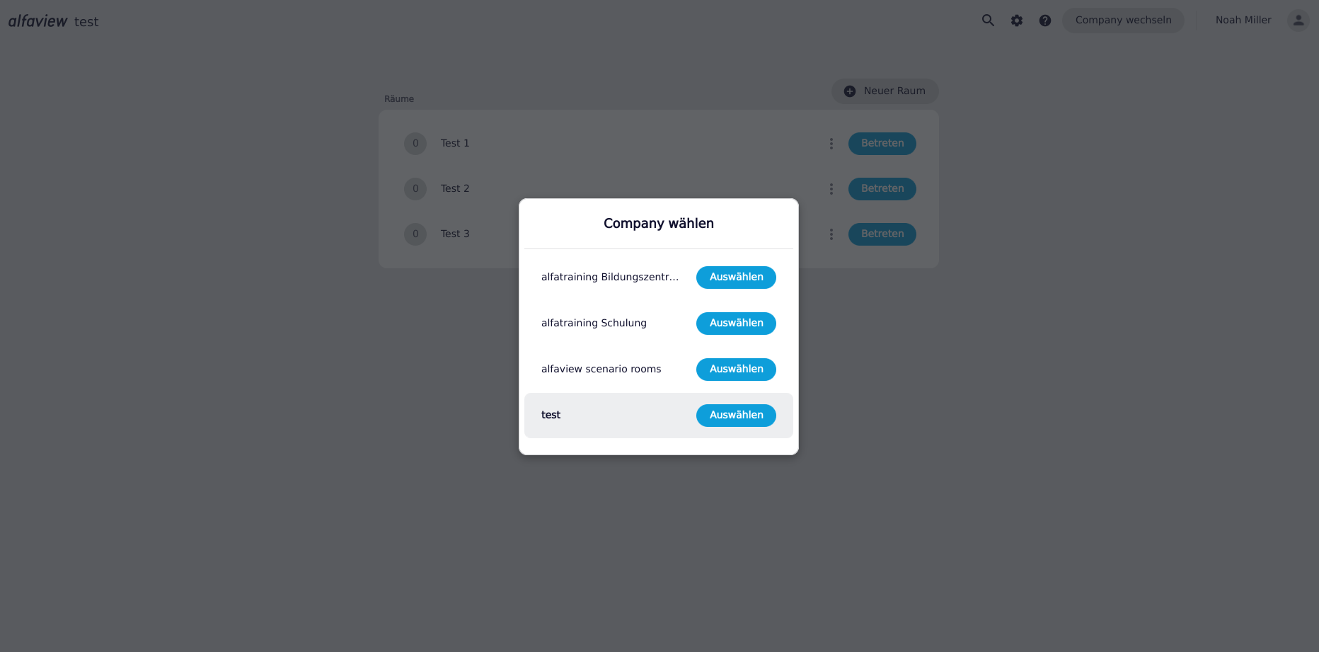 • Nun sehen Sie alle für Sie zugänglichen alfaview-Räume der Company in der Raumliste.