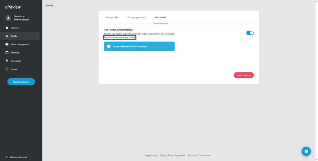 Therefore, use the codes exclusively for account recovery and not for regular login to alfaview.