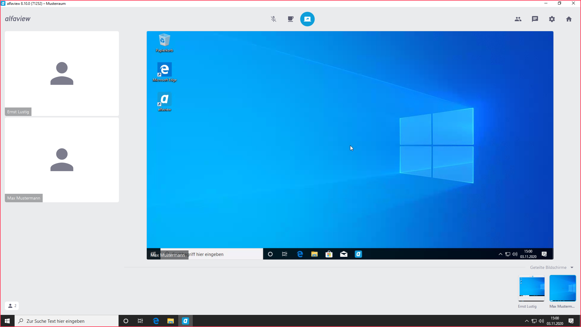 With the screen sharing feature, an area of your screen can be captured and shared with other participants in an alfaview room.